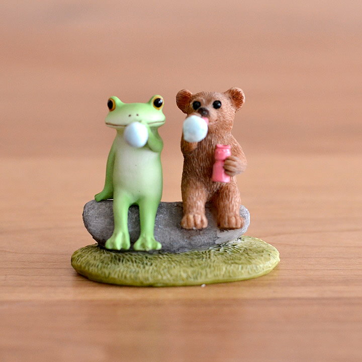 シャボン玉 で遊ぶ コポタロウ と クマ 。